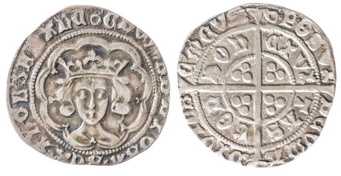 England. House of York. Edward IV second reign (1471-1483). Groat, mm large annulet (1471-2). London. 2.94 gm. Crowned facing bust in tressure, trefoils on cusps, rev. Long cross, pellet triplex in angles. S.2096. Toned. Very Fine.