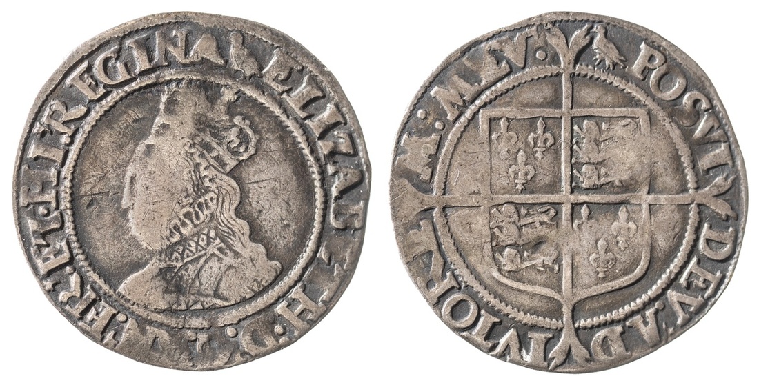 England. House of Tudor. Elizabeth I (1558-1603). Second issue, 1560-61. Shilling, mm martlet. 5.64 gm. Crowned bust left, rev. Shield over cross fourchée. S.2555. Deep tone over some obverse contact marks. Fine.