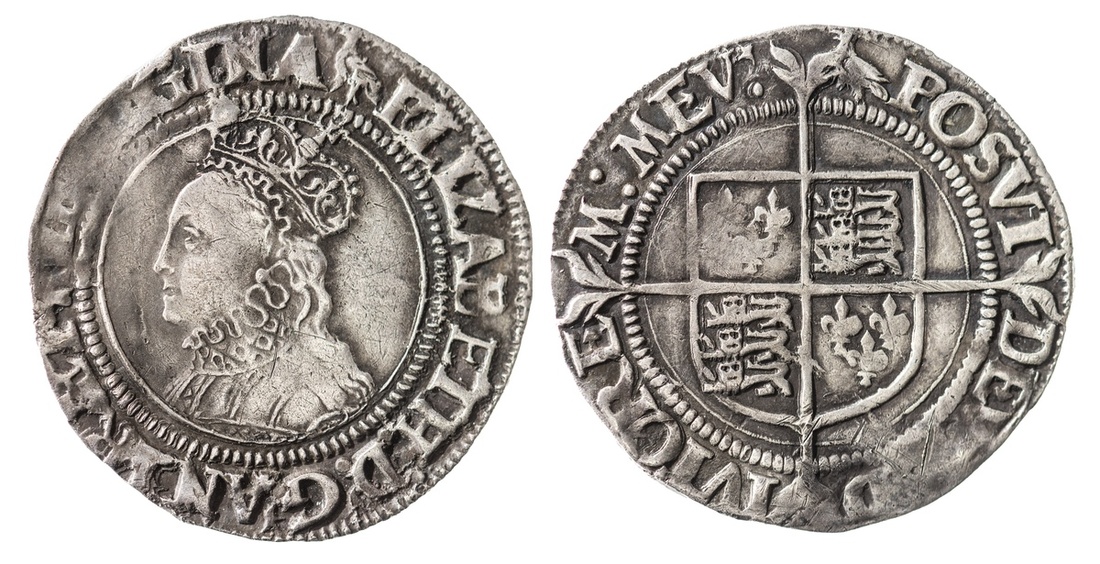 England. House of Tudor. Elizabeth I (1558-1603). Second Issue, 1560-61. Groat, mm martlet. 2.10 gm. Crowned bust left, rev. Shield over cross fourchée. S.2556. Toned over a few old minor hairlines. Very Fine.