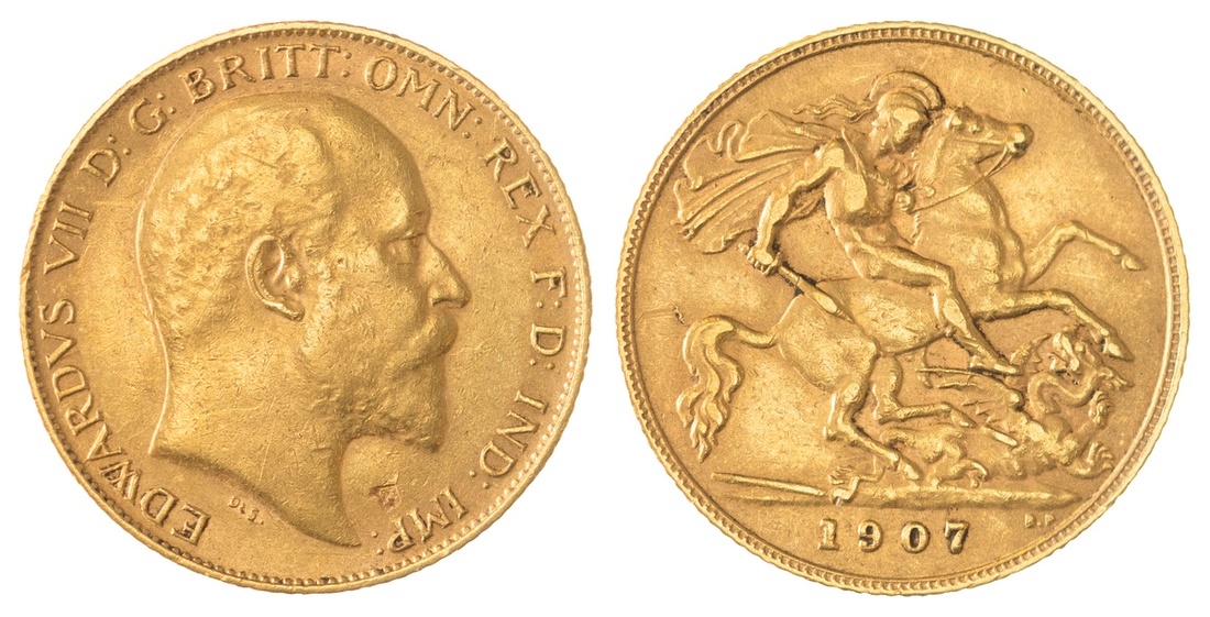 Great Britain. Edward VII (1901-1910). Half Sovereign, 1907. Bare head right, rev. St. George. S.3974B, KM 804. About VF.