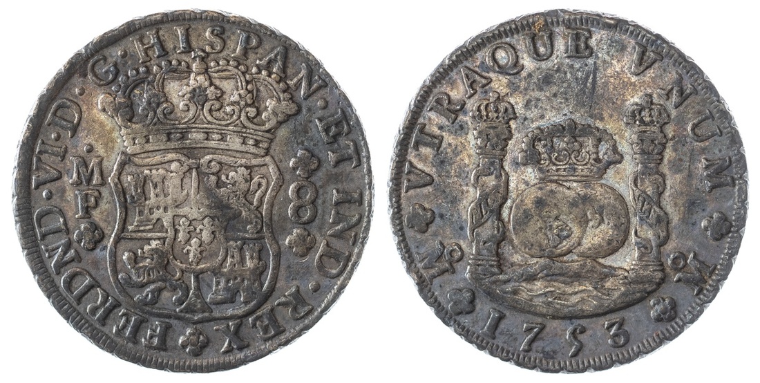 Mexico. Fernando VI (1746-1759). 8 Reales, 1753 Mo MF. Mexico City. Dos Mundos types. KM 104.1. Deep gray tone. About Extremely Fine.