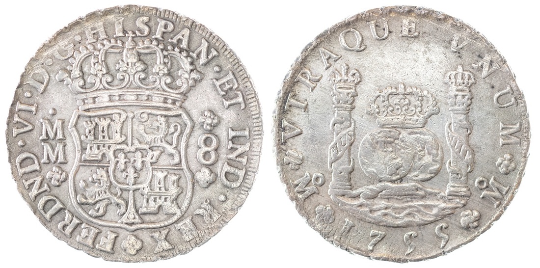 Mexico. Fernando VI (1746-1759). 8 Reales, 1755 Mo MM. Mexico City. Dos Mundos types. KM 104.2. Extremely Fine.