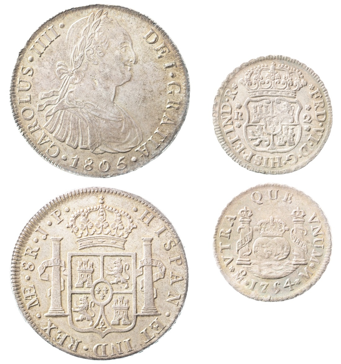 Peru. Carlos IV (1788-1808). 8 Reales, 1805 JP. Lima. Laureate, armored bust right, rev. Crowned Arms flanked by Pillars. KM 97. Small lamination on neck. Golden highlights. Good Extremely Fine.