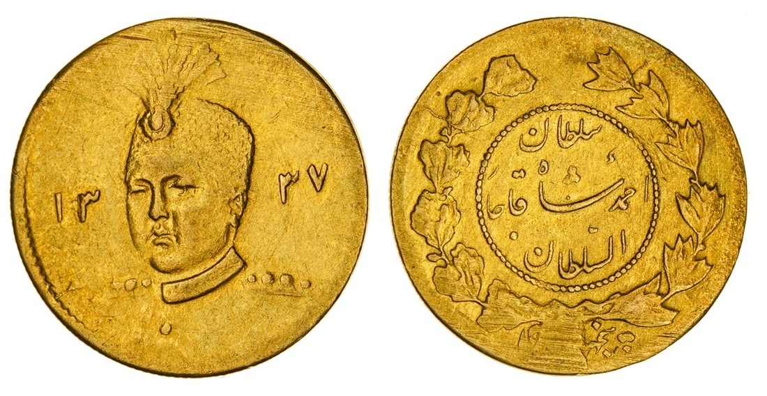 Iran. Sultan Ahmad Shah (AH 1327-1344/ 1909-1925 AD). 5000 Dinar (1/2 Toman), AH 1337. 1.44 gm. Uniformed bust ¾ left, wearing cap with aigrette, dividing date. KM 1071. About Extremely Fine.