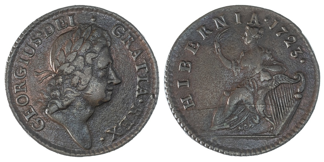 1723 Wood's Hibernia Halfpenny. Very Fine. 108 gn. Reverse diebreak. Toned.
