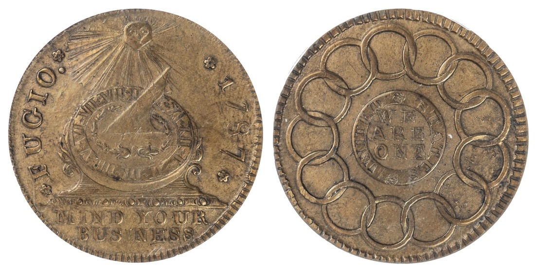 1787 Copper Fugio Cent. New Haven restrike. NGC Genuine. Extremely Fine.
