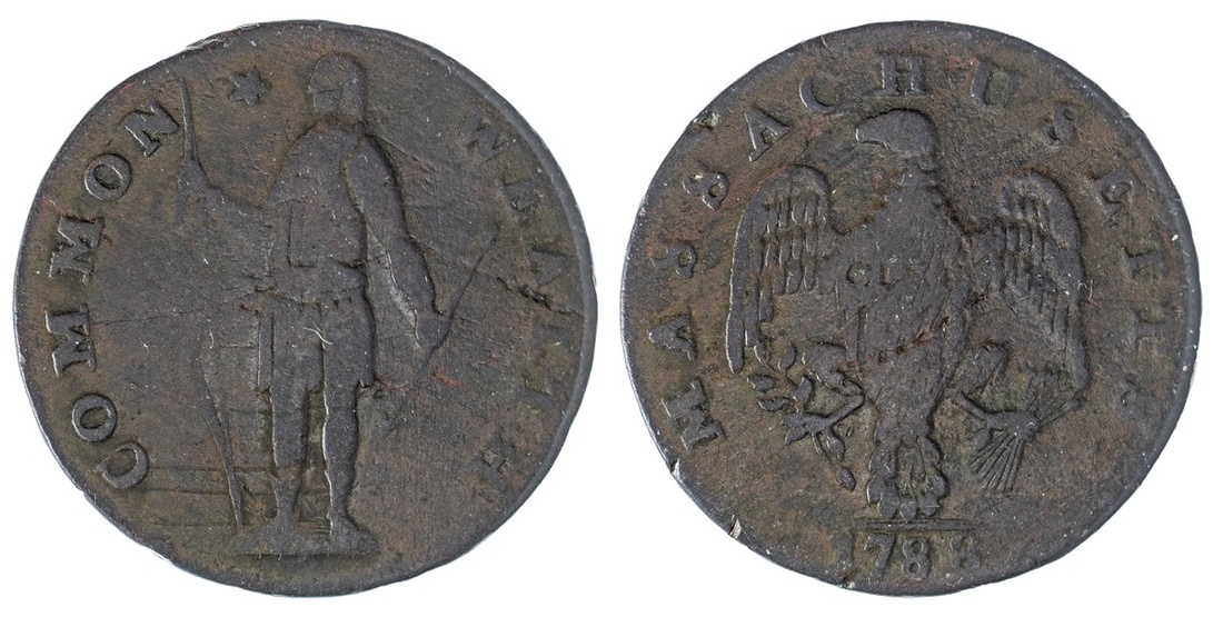1788 Massachusetts Copper Cent. Period. VG/Fine. 158 gn. Some reverse scratches.