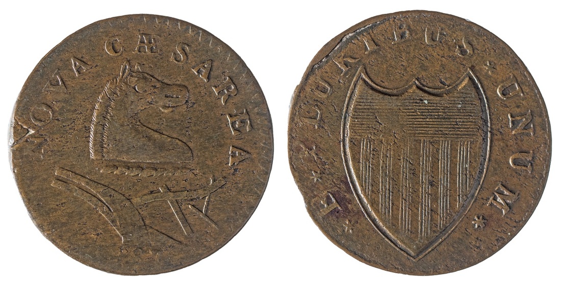 1787 New Jersey Copper. No sprig. About Very Fine. 154 gn. Metal striation.