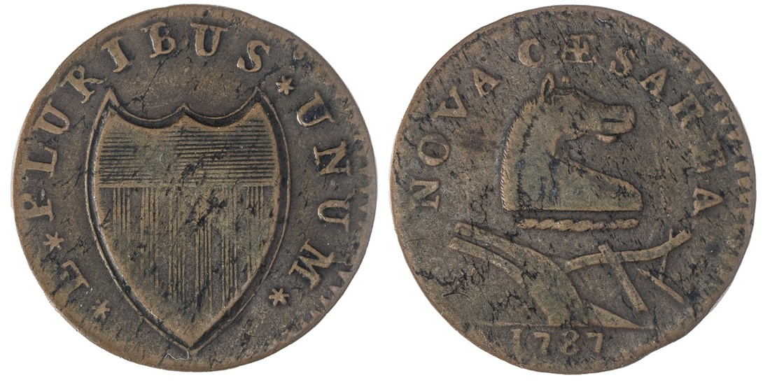 1787 New Jersey Copper. No sprig. Fine-About Very Fine. 148 gn. Tan-brown.