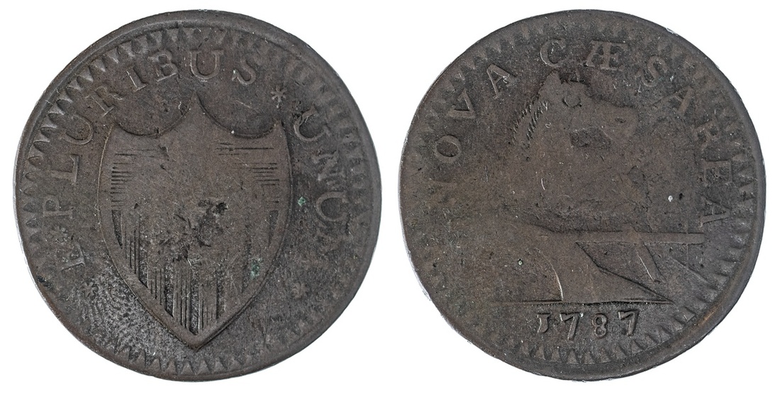 1787 New Jersey Copper. No sprig. About Fine. 138 gn. Weakly struck centers.