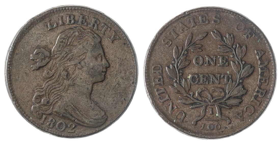 1802 Draped Bust Cent. Very Fine. Deep brown over old obverse scratches and some light reverse deposits.