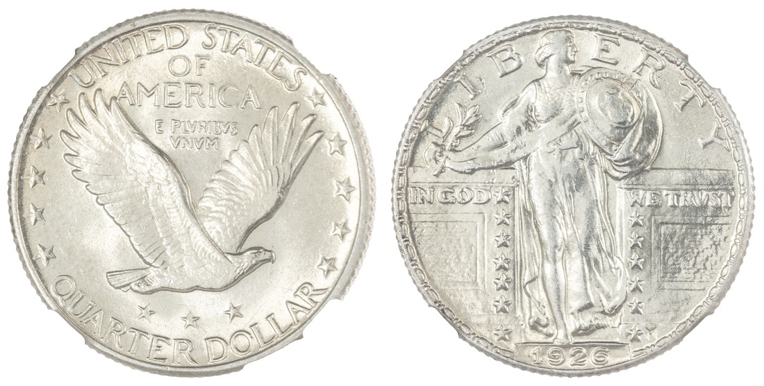 1926 Standing Liberty Quarter. NGC MS 61. Bold lustre.