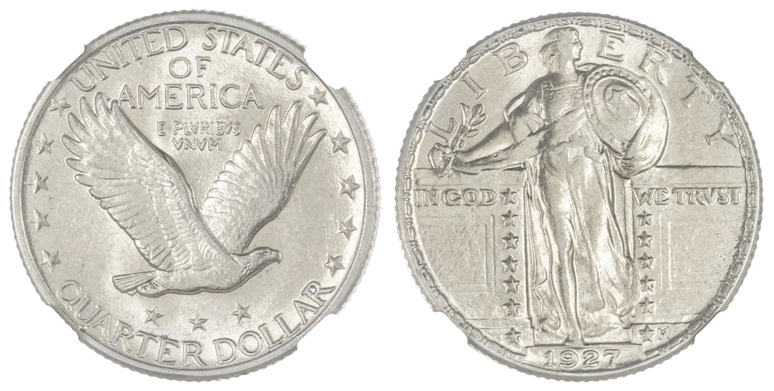 1927 Standing Liberty Quarter. NGC AU 58.