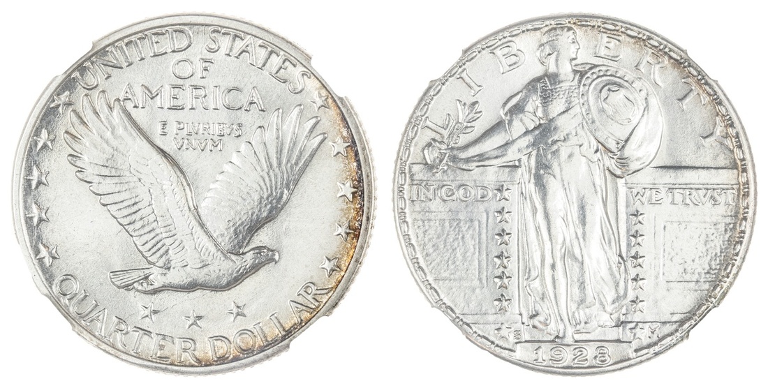 1928 Standing Liberty Quarter. NGC Unc Details, cleaned.