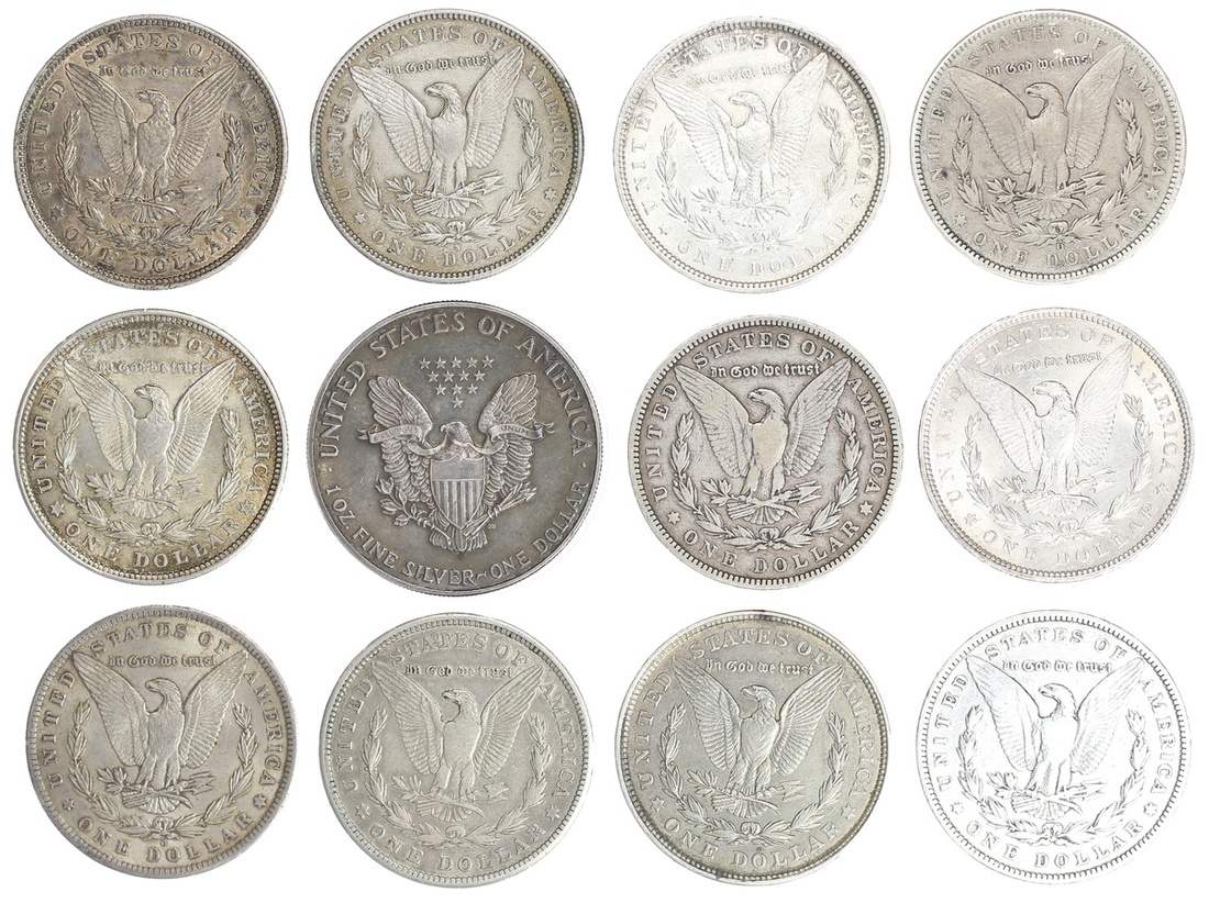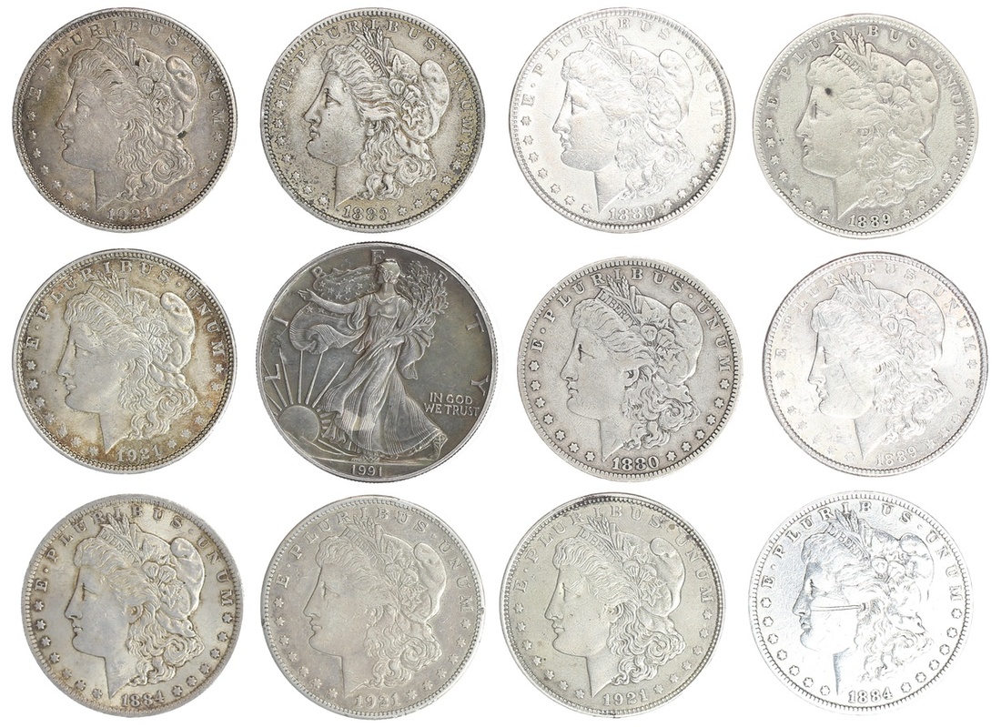 Circulated Morgan Dollar Lot: 1880 (2), 1883-S, 1884 (polished and scratches) 1884-O, 1889 (scratch), 1889-O (harshly cleaned), 1921 (3), 1921-S; also 1991 Silver Eagle. (12)