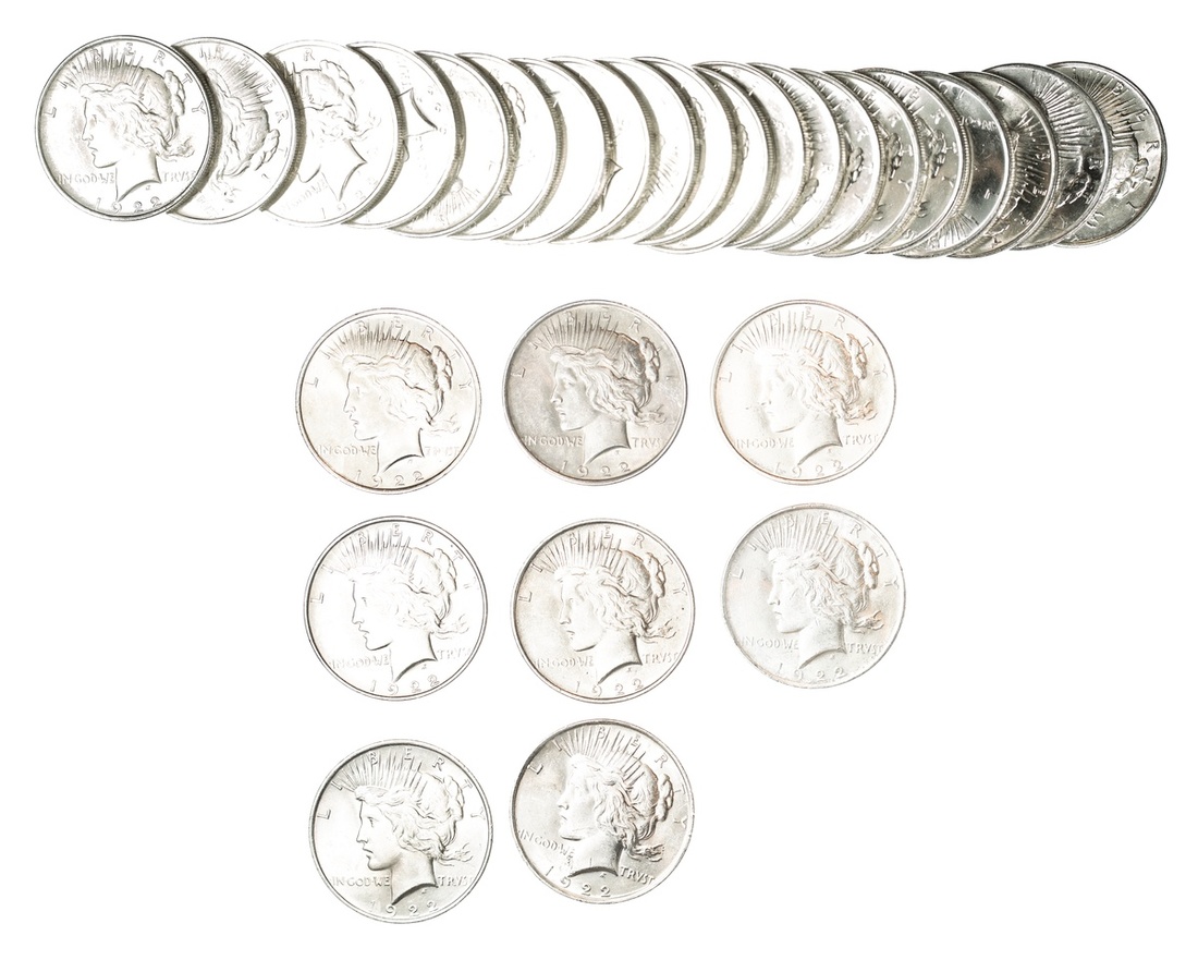 Uncirculated Roll of 1923 Peace Dollars. (20)