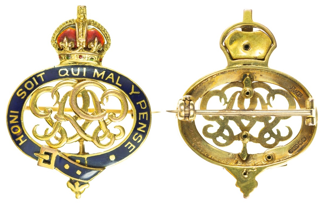 Great Britain. Order of the Garter 9K Gold and Enamel Pin. 1948. 5.3 gm. Hallmark, J.W.B. and date letter on back. Extremely Fine.