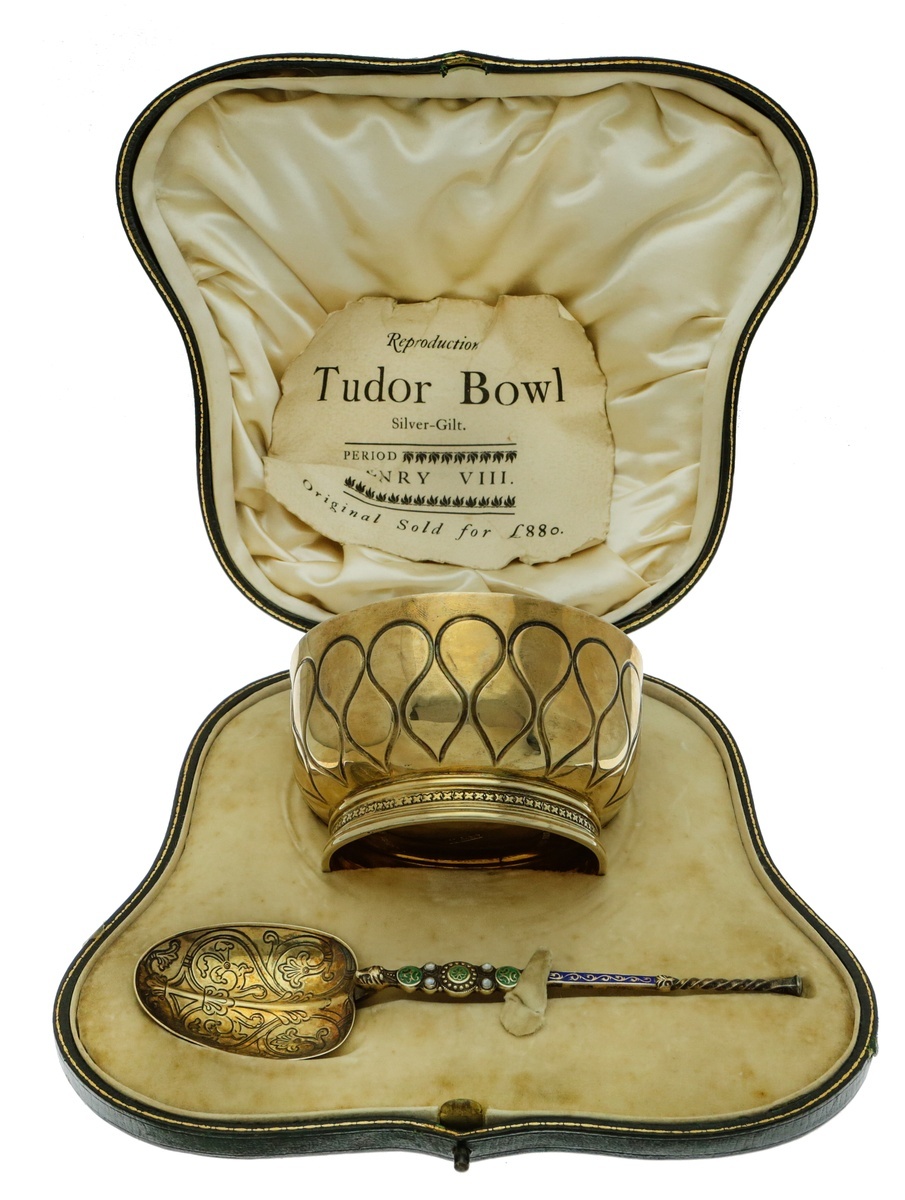 A Reproduction of H.M. King Henry VIII Silver-Gilt Bowl and A Silver-Gilt Coronation Anointing Spoon
