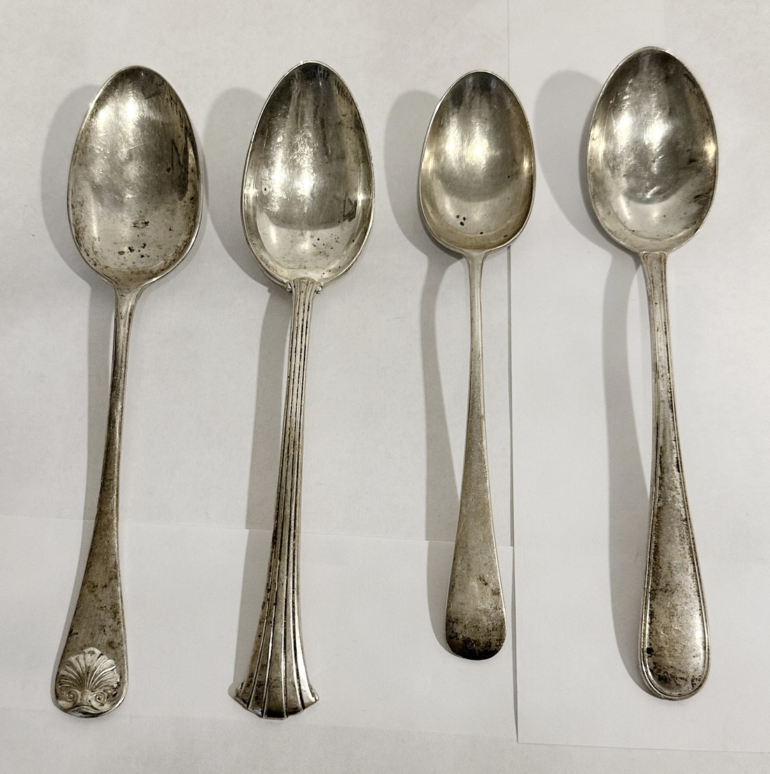 Two by Gorham, one by Reed and Barton, one by Steiff. Various patterns.