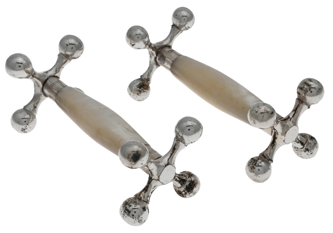 Each twice hallmarked with mother of pearl rest. Rubbed hallmarks. Length 8cm. Total weight 131g.