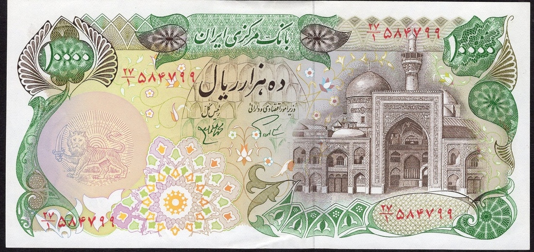 Iran. Islamic Republic. 1981 (ND) First Issue. Error 10,000 Rials. P-131var. No. 27/1 584799. Without black calligraphic seal overprint. Uncirculated.