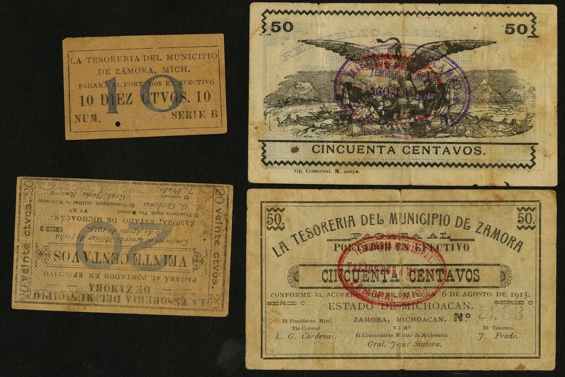 Mexico. Revolutionary. Michoacán. La Tesorería Municipio de Zamora. 10, 20 and 50 Centavos. 1915. Mich.131, 133, 134 (2). The last Fine, the others VF. [4]