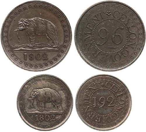 Ceylon, George III, AE proof pair of 1/96, 1/192 Rix Dollar, 1802 (2 coins), Birmingham (Pr. 86A, 87A), surfaces dulled, especially the 1/96, this with minor evidence of handling, the 1/192 with much lustre, extremely fine or better (2) Estimate £ 150-180