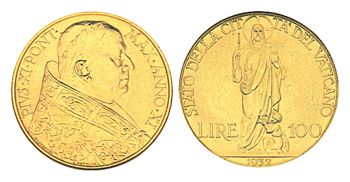 Italy, Vatican, Pius XI, 100-Lire, 1932, An XI (F.283; KM.9), in NGC holder graded MS 63 Estimate £ 180-220