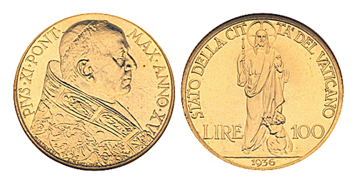 Italy, Vatican, Pius XI, 100-Lire, 1936, An. XV (Fr.285; KM 10, in NGC holder graded MS 64 Estimate £ 180-220
