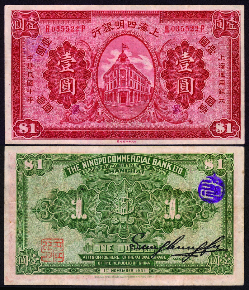 1921 (November 1) The Ningpo Commercial Bank Limited (Shanghai) $1, fine.