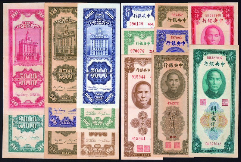 1947 & 1948 Central Bank of China, group of 8, including 1947 500, 1000, 2000(2), 2500 & 5000 gold units, and 1948 5000(2) gold units (8).