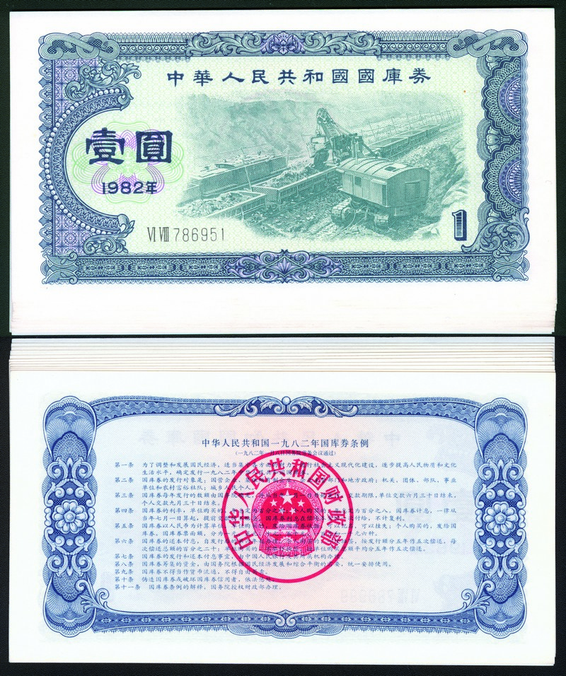 1982 PR China National Treasury Note 1 Yuan, group of 13, very fine.