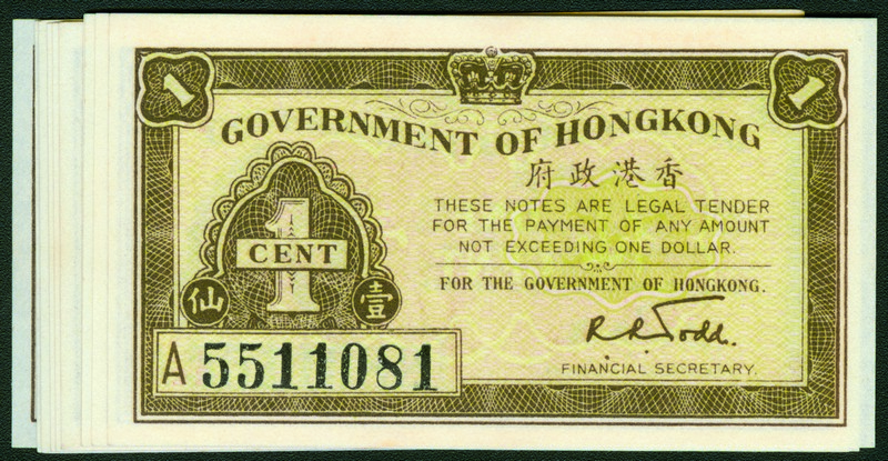 1941 (no date) Government of Hongkong 1 Cent (Ma G1), scarce group of 10, all prefix A, UNC (10).