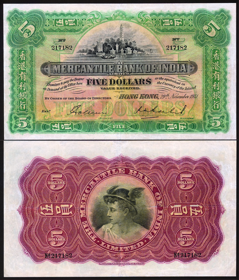 1941 (November 29) Mercantile Bank of India $5 (Ma M3), EF.