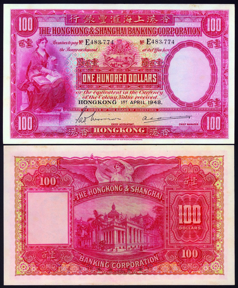 1948 (April 1) The Hongkong & Shanghai Banking Corporation $100 (Ma H31), EF.