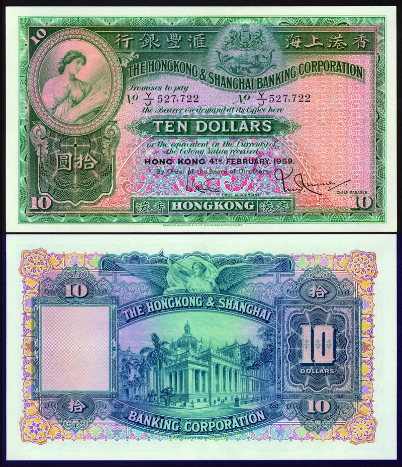 1959 (February 4) The Hongkong & Shanghai Banking Corporation $10 (Ma H14a), UNC.