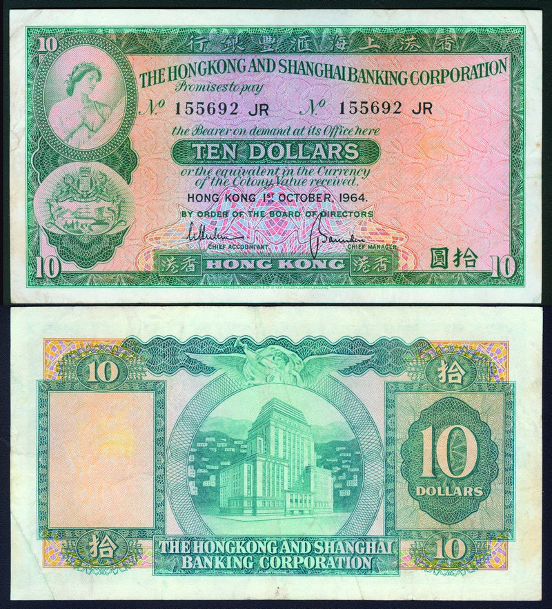 1964 (October 1) The Hongkong and Shanghai Banking Corporation $10 (Ma H15), key value, EF.
