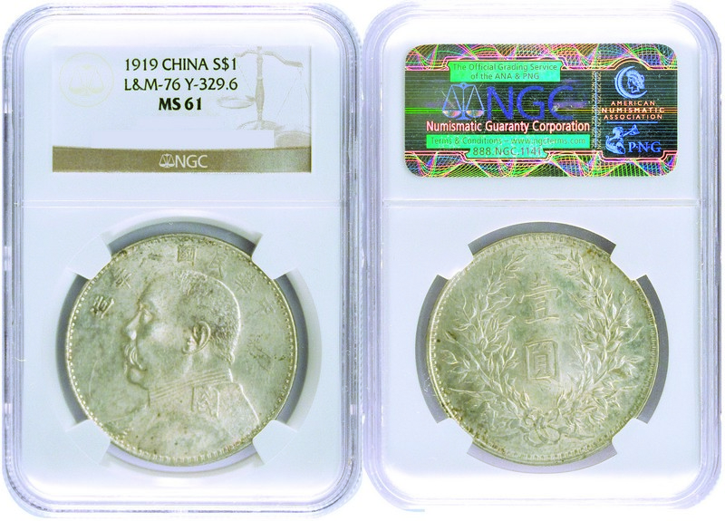 1919 Yuan Shih-Kai Silver Dollar, NGC MS61.