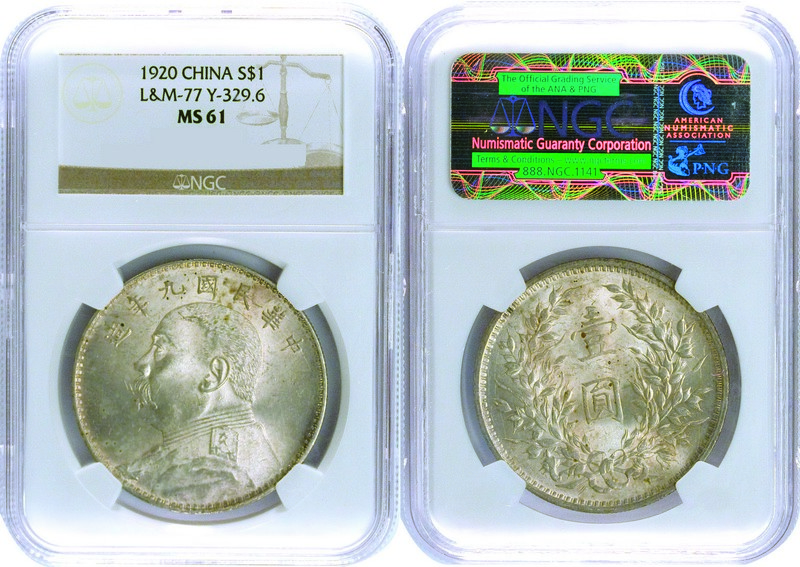 1920 Yuan Shih-Kai Silver Dollar, NGC MS61.