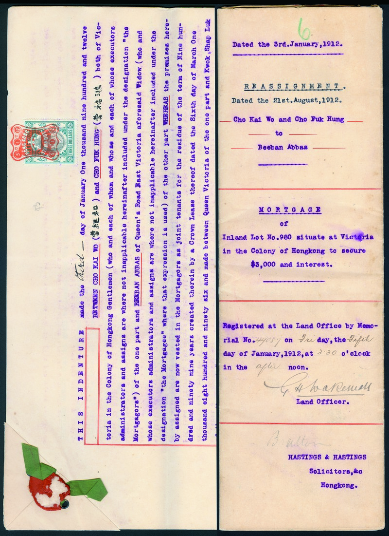 Indenture: 1912 (January 3) KEVII Revenues, bearing 30c and $3, fine.
