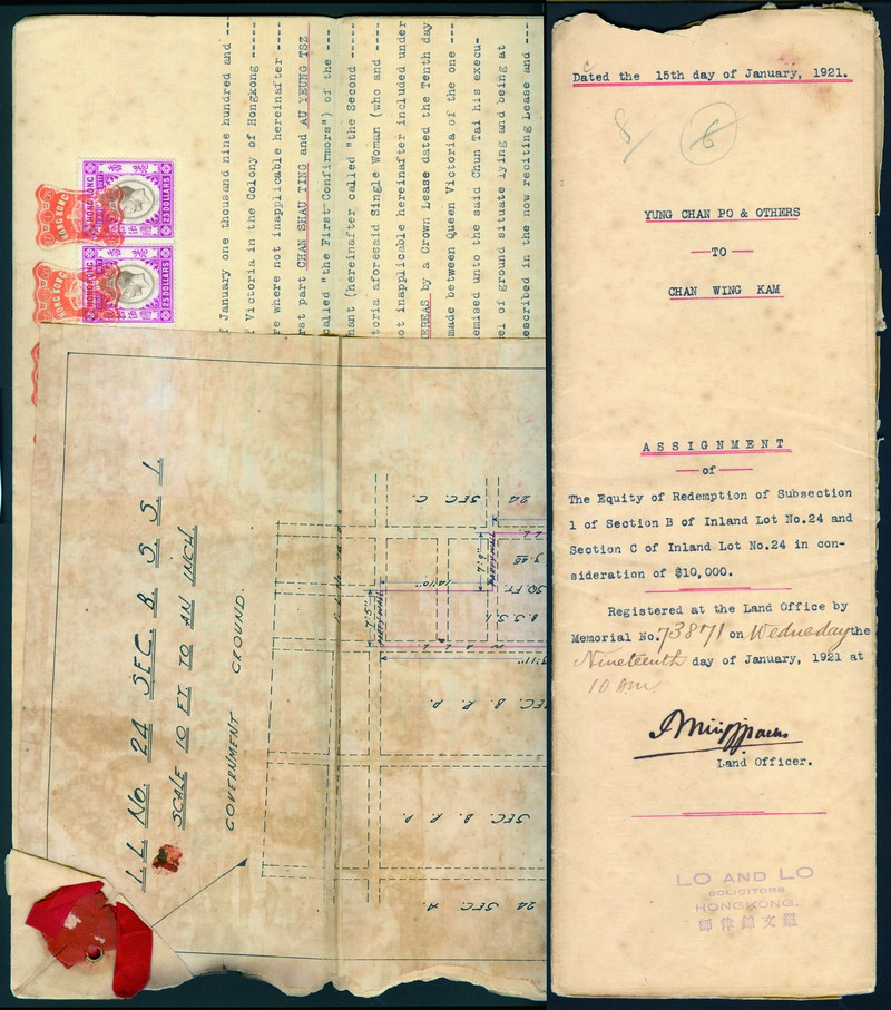 Indenture: 1921 (January 15) KGV Revenues, bearing $25(3) and $100, scarce usage of these two values, fine.