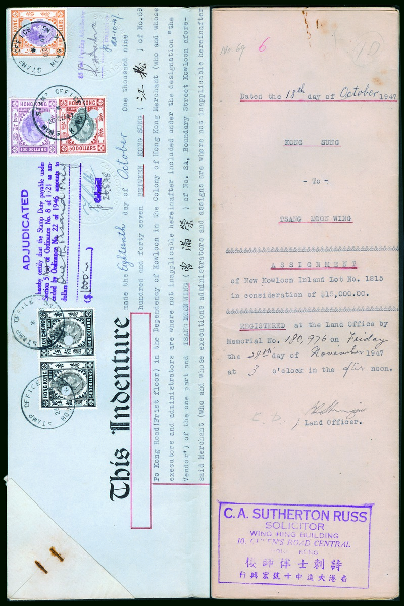 Indenture: 1947 (October 18) KGVI Revenues, bearing $5, $50, $100 and $500(2), fine.