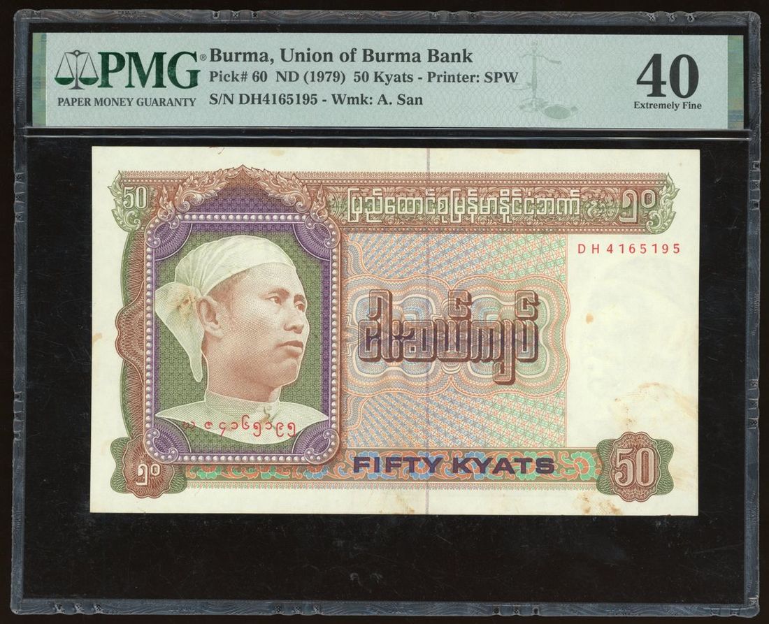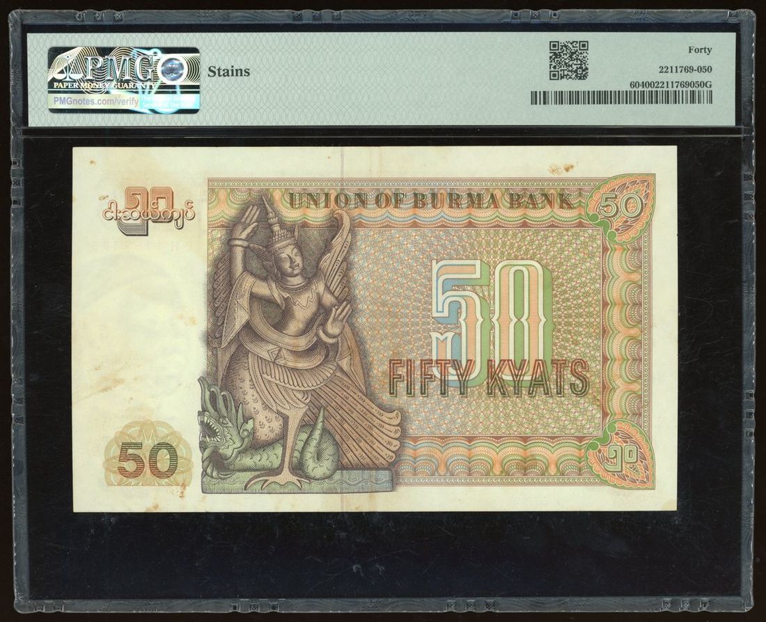 Union of Burma Bank, 50 kyats, ND (1979), serial number DH4165195, (Pick 60), PMG 40, stains