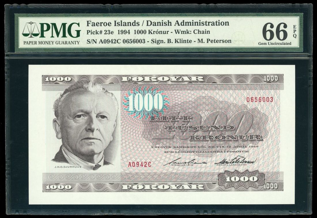 1994年法羅群島1000克朗, 編號 0656003, PMG 66EPQ