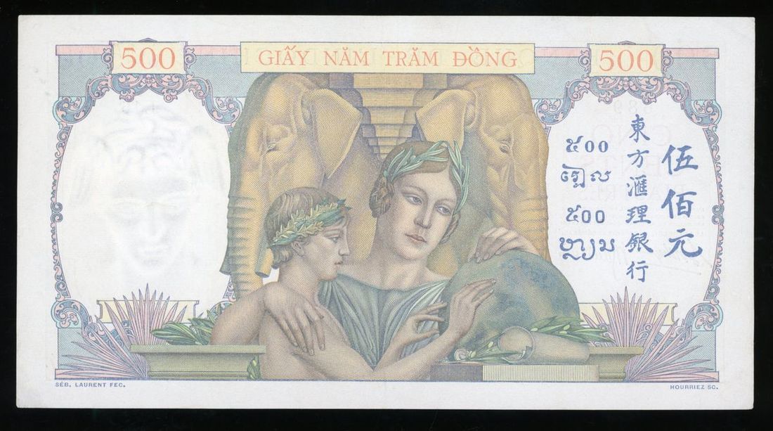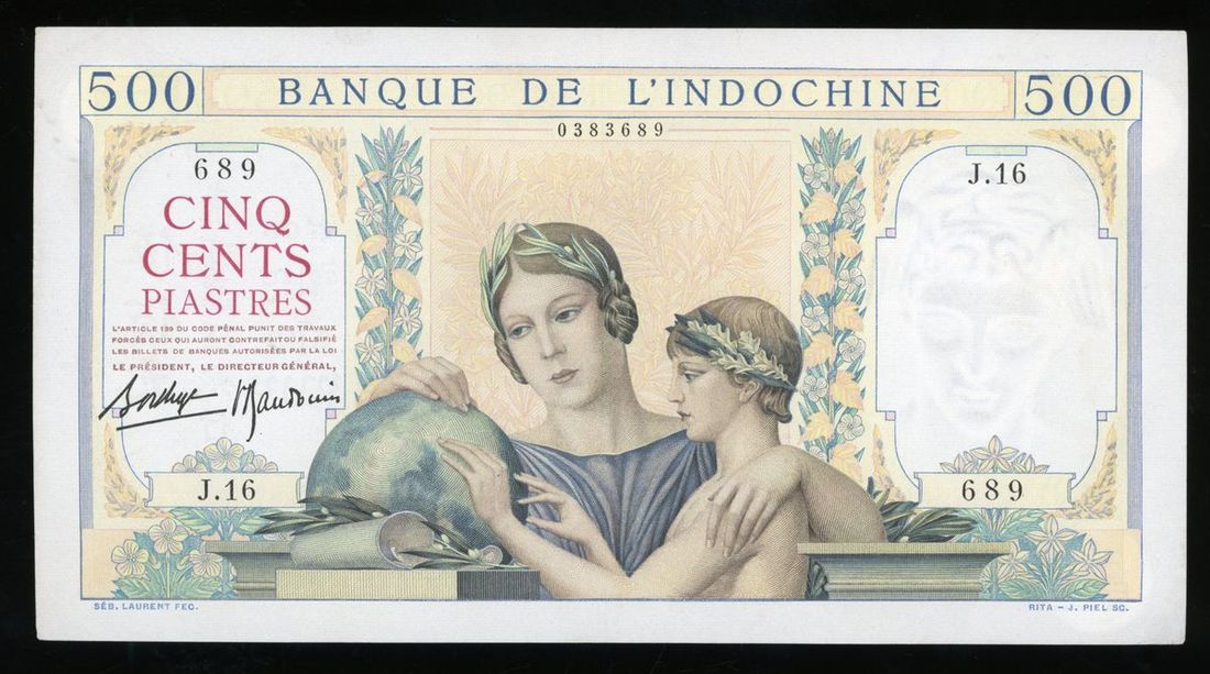 Banque de l'Indochine, French Indo China, 500 piastres, ND (1940), serial number J.16 689, (Pick 57), minor corners repair, otherwise about extremely fine