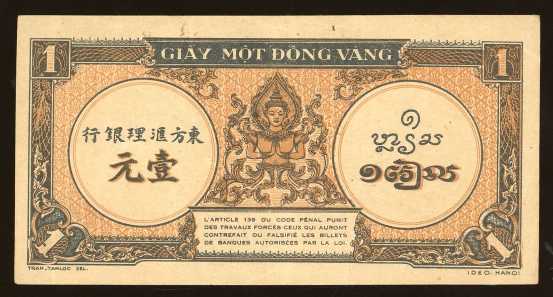 Banque de l'Indochine, French Indo China, 1 piastre, ND (1943-45), serial number 0155062, (Pick 58), good extremely fine