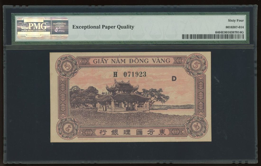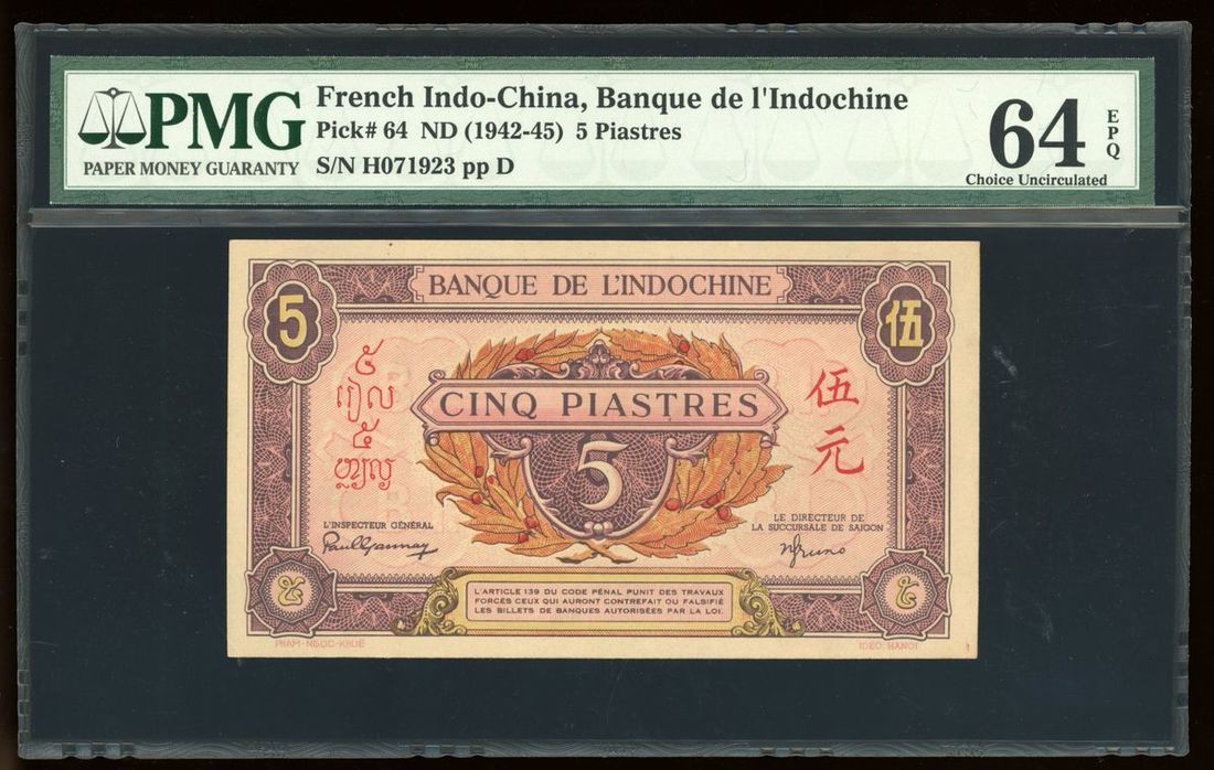 1942-45年法屬安南5元, PMG 64EPQ