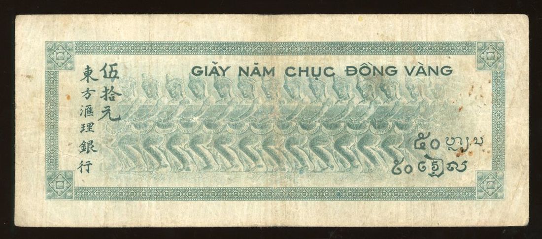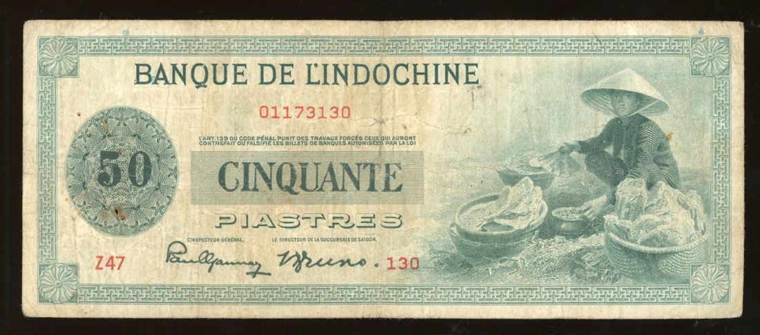 Banque de l'Indochine, French Indo China, 50 piastres, ND (1946), serial number Z47 130, (Pick 77), pinholes, about very fine