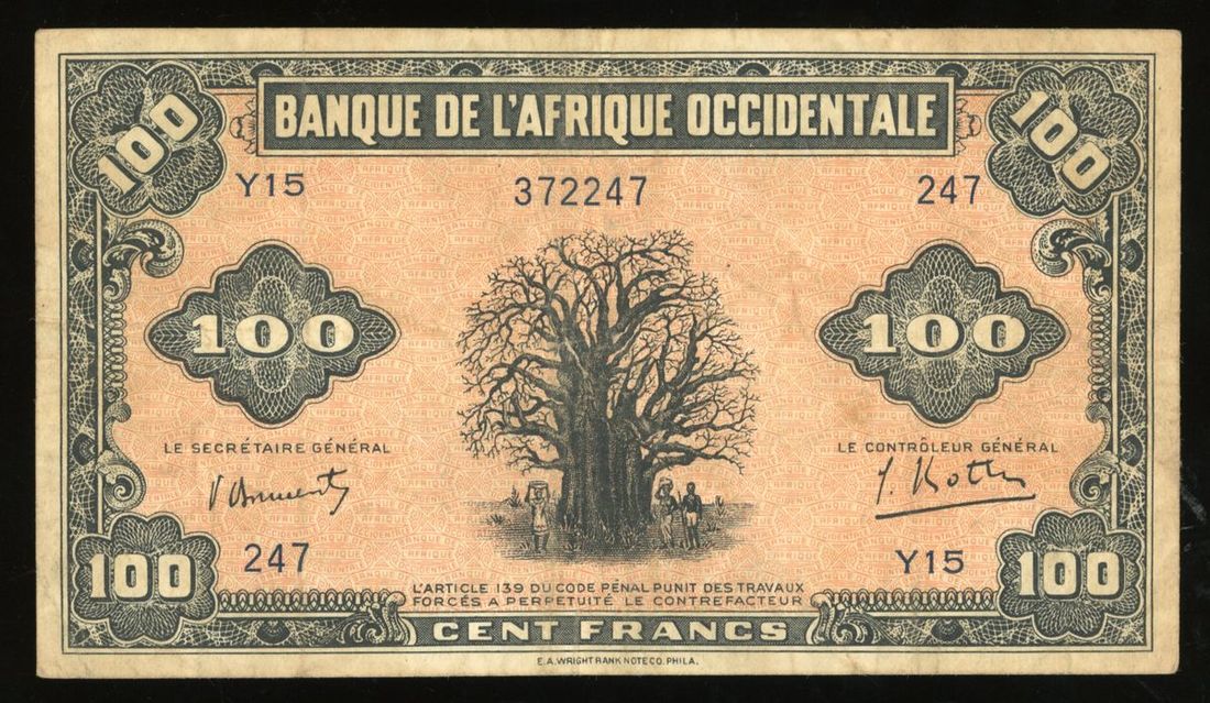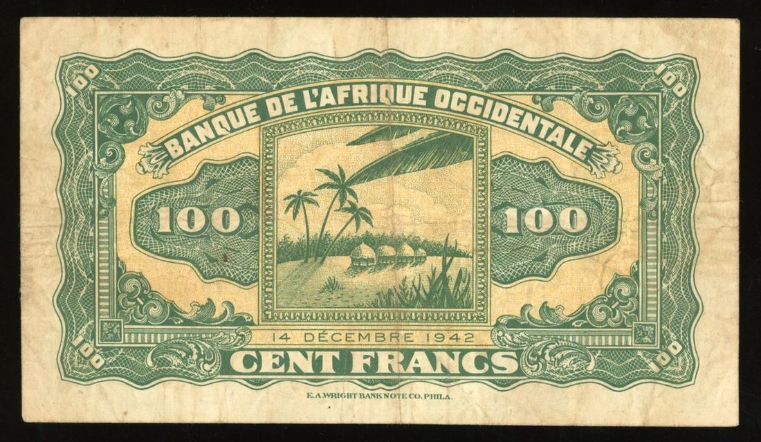 Banque de l'Afrique Occidentale, French West Africa, 100 francs, 14.12.1942, serial number Y15 247, (Pick 31), about very fine