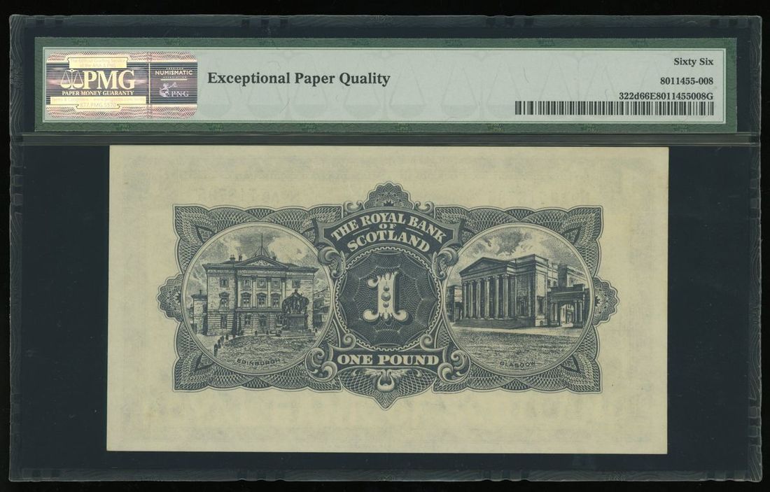 1954年蘇格蘭1鎊, 編號 AB718795, PMG 66EPQ